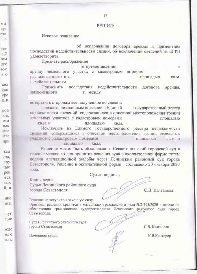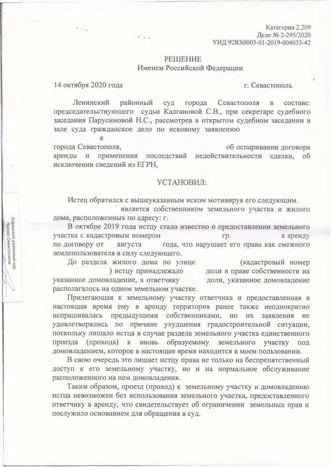 Скачать: Копия решения Ленинского районного суда об оспаривании договора аренды