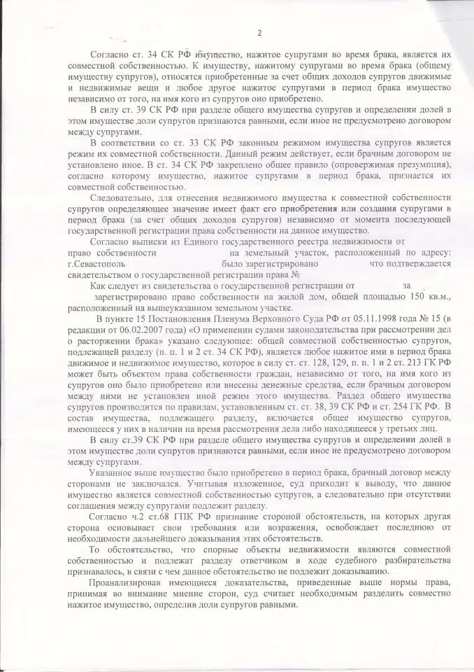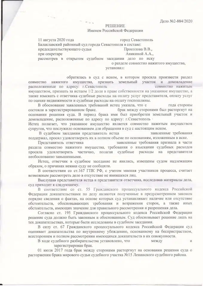 Скачать: Копия решения Балаклавского районного суда о разделе совместно нажитого имущества супругов