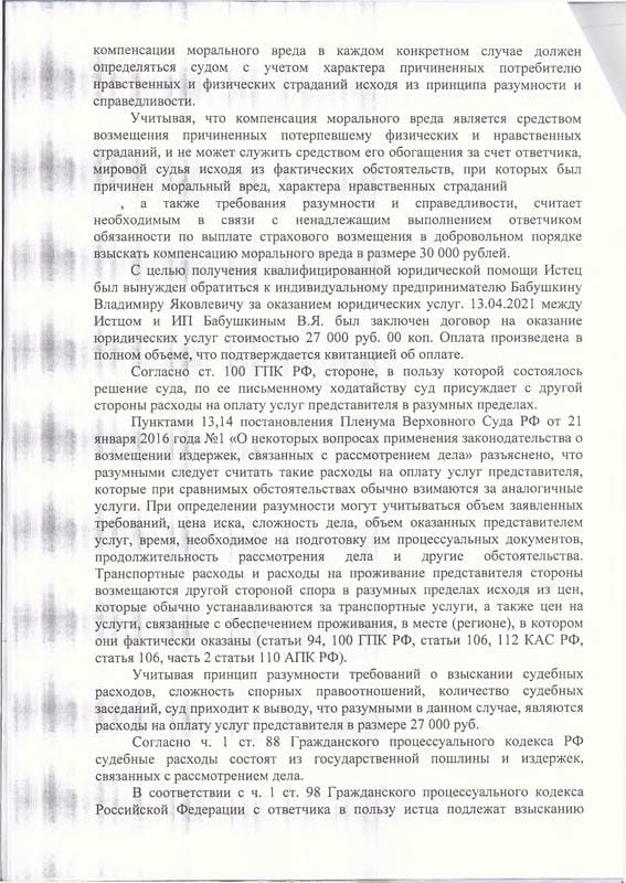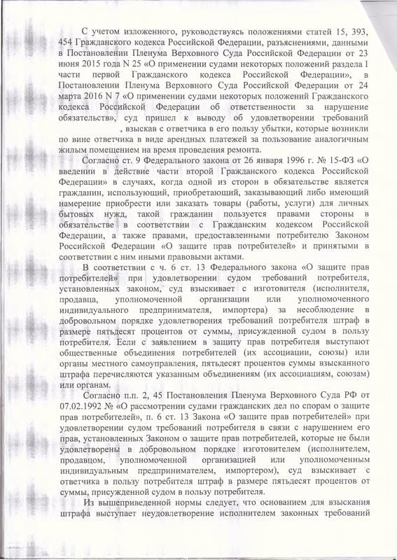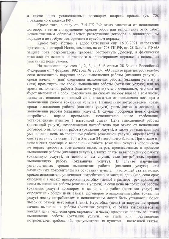 Оказанные услуги: Изучение документов, досудебная претензия, расчёт неустойки и убытков, составление и подача искового заявления, подготовка возражений на встречный иск, участие в судебных заседаниях