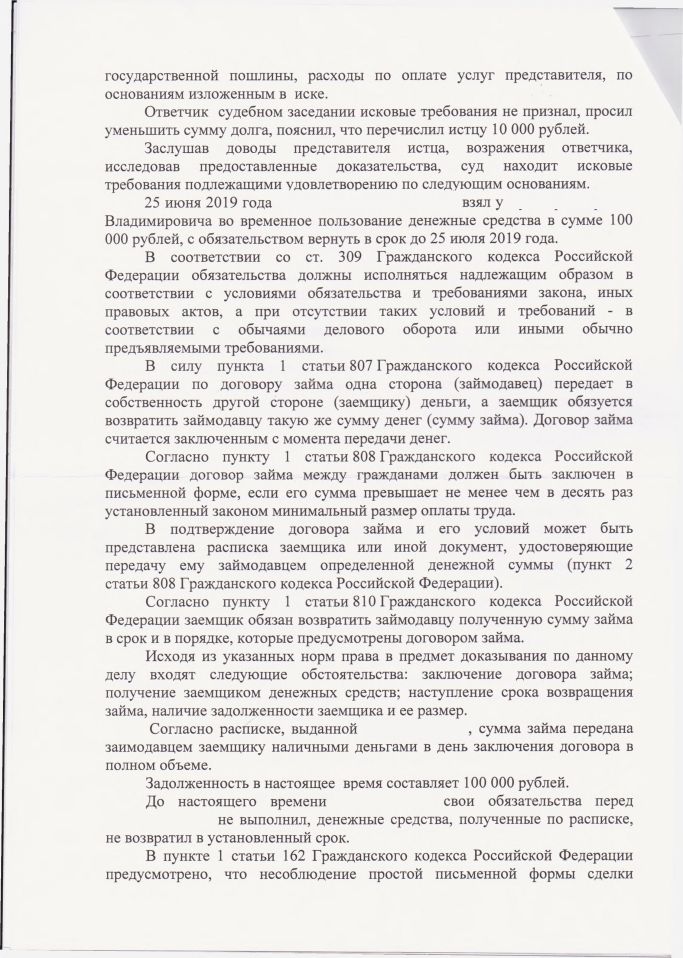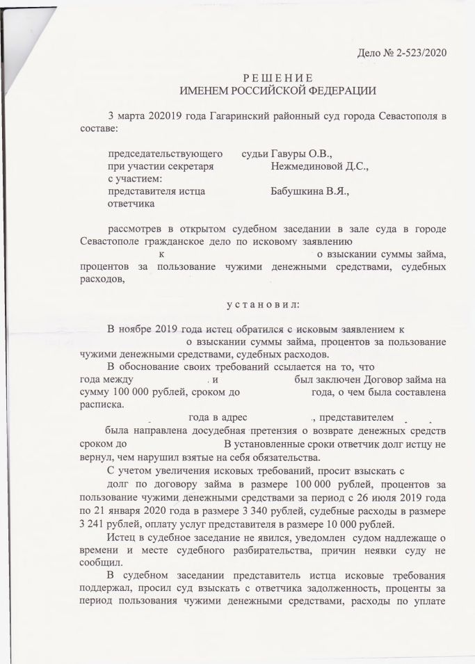 Скачать: Копия решения Гагаринского районного суда о взыскании займа по расписке