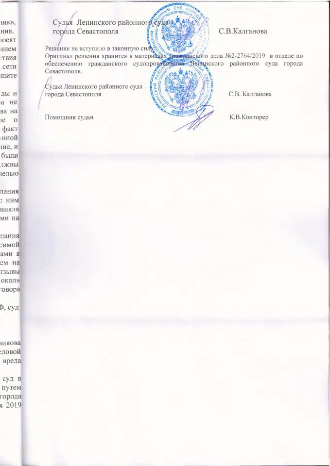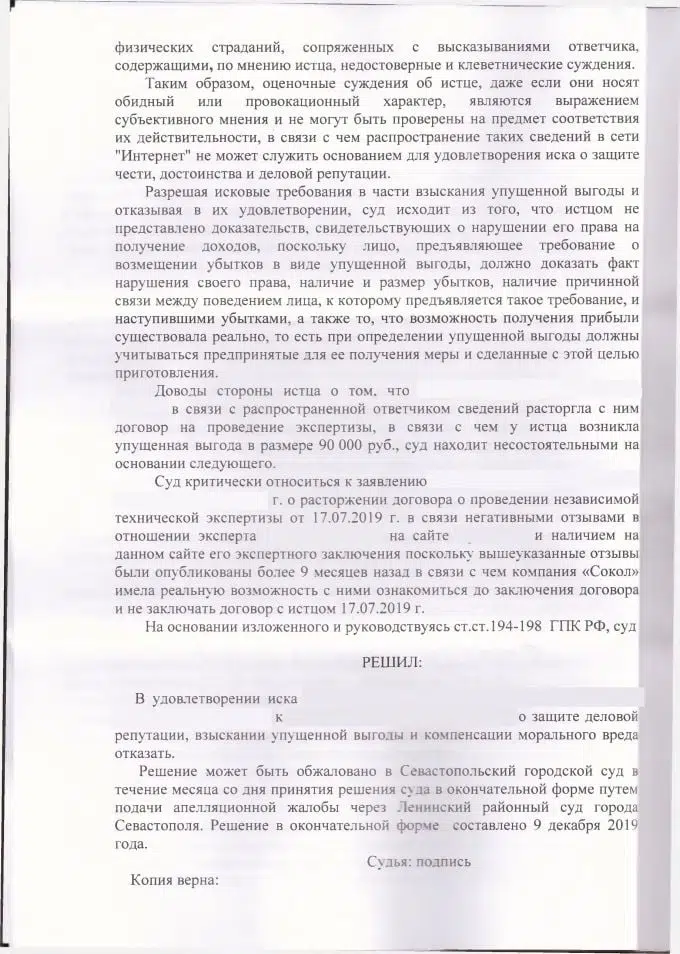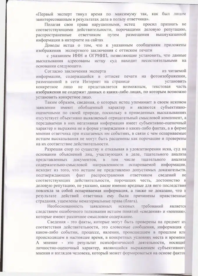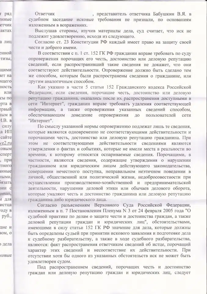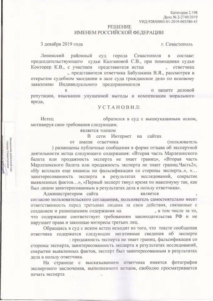 Скачать: Копия решения Ленинского районного суда о защите деловой репутации